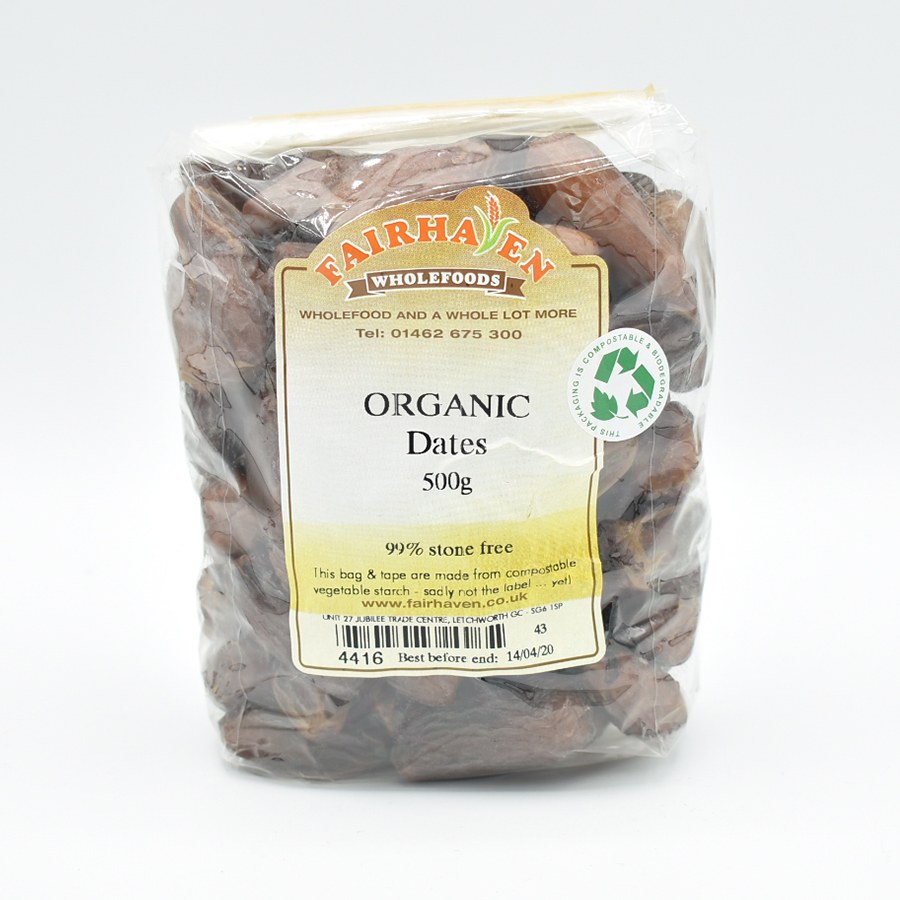 Organic stone free dates weighed out by Fairhaven and packed in plastic free packaging that is home compostable.