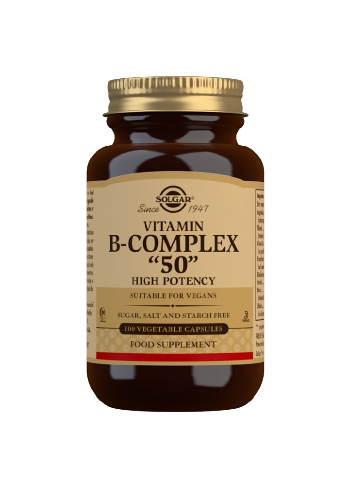 Solgar ® Vitamin B-Complex ''50'' is a high potency Vitamin B-Complex delivering a 50 mg dose of key B vitamins. Many B vitamins are interdependent, and thus it is best to take them in combination, such as through a B-complex or a multiple vitamin containing a B-complex.